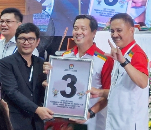 Dengan pengundian nomor urut pasangan calon dituangkan dalam berita acara dan ditetapkan melalui Surat Keputusan KPU Sulut.