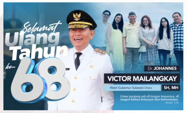 WARTALIDIK, MANADO -kediaman Wakil Gubernur Sulawesi Utara, DR. Johanes Victor Mailangkay, S.H., M.H., di Winangun, tampak berbeda. Bukan hiruk-pikuk pesta mewah yang tersaji, melainkan suasana sederhana yang sarat dengan kehangatan. Hari itu, pria yang akrab disapa Victor merayakan ulang tahunnya yang ke-68 dengan penuh rasa syukur. Jumat (19/9/2025.